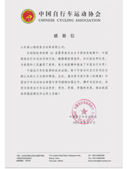 中国自行车运动协会感谢信