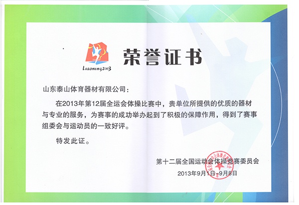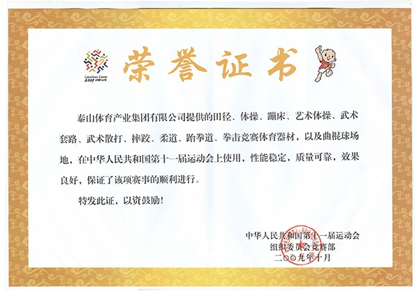 2009年第十一届全运会证书